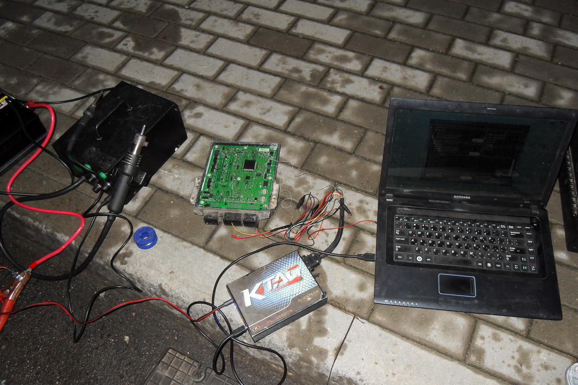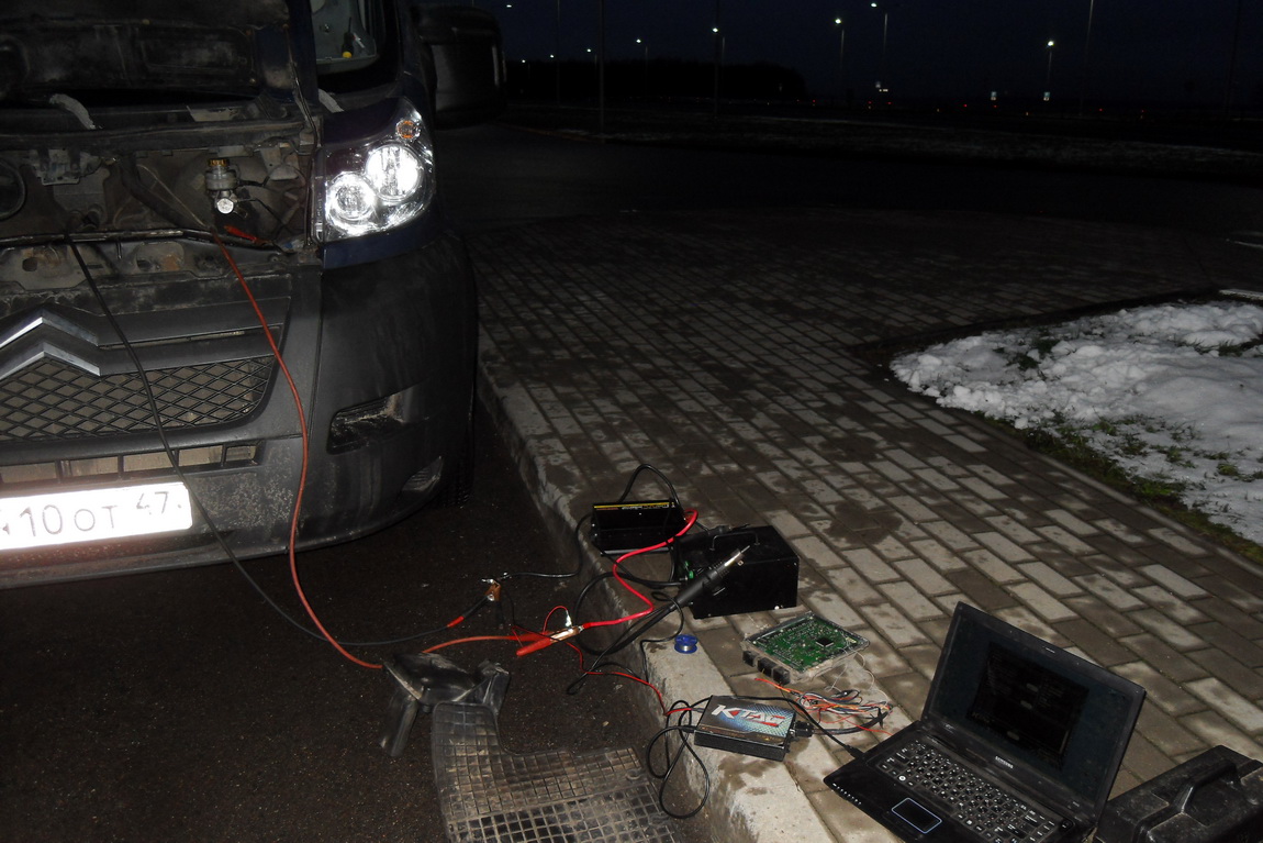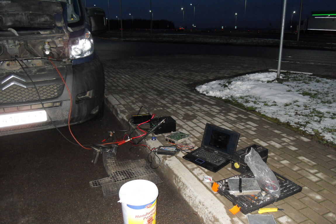 К нам он позвонил с просьбой заменить блок управления двигателем. Мы прошили б.у. блок управления прямо на трассе, но автомобиль не завелся.